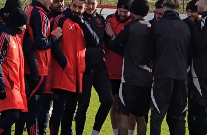 Rúben Amorim no dia do seu aniversário, em que completou 40 anos, foi alvo de uma brincadeira no treino do Manchester United, junto com o adjunto Darren Fletcher. CLIQUE AQUI PARA VER O VÍDEO